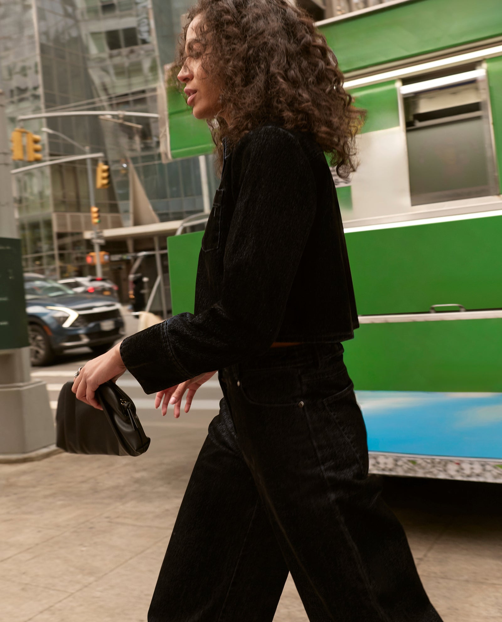 A person wearing a leather jacket.