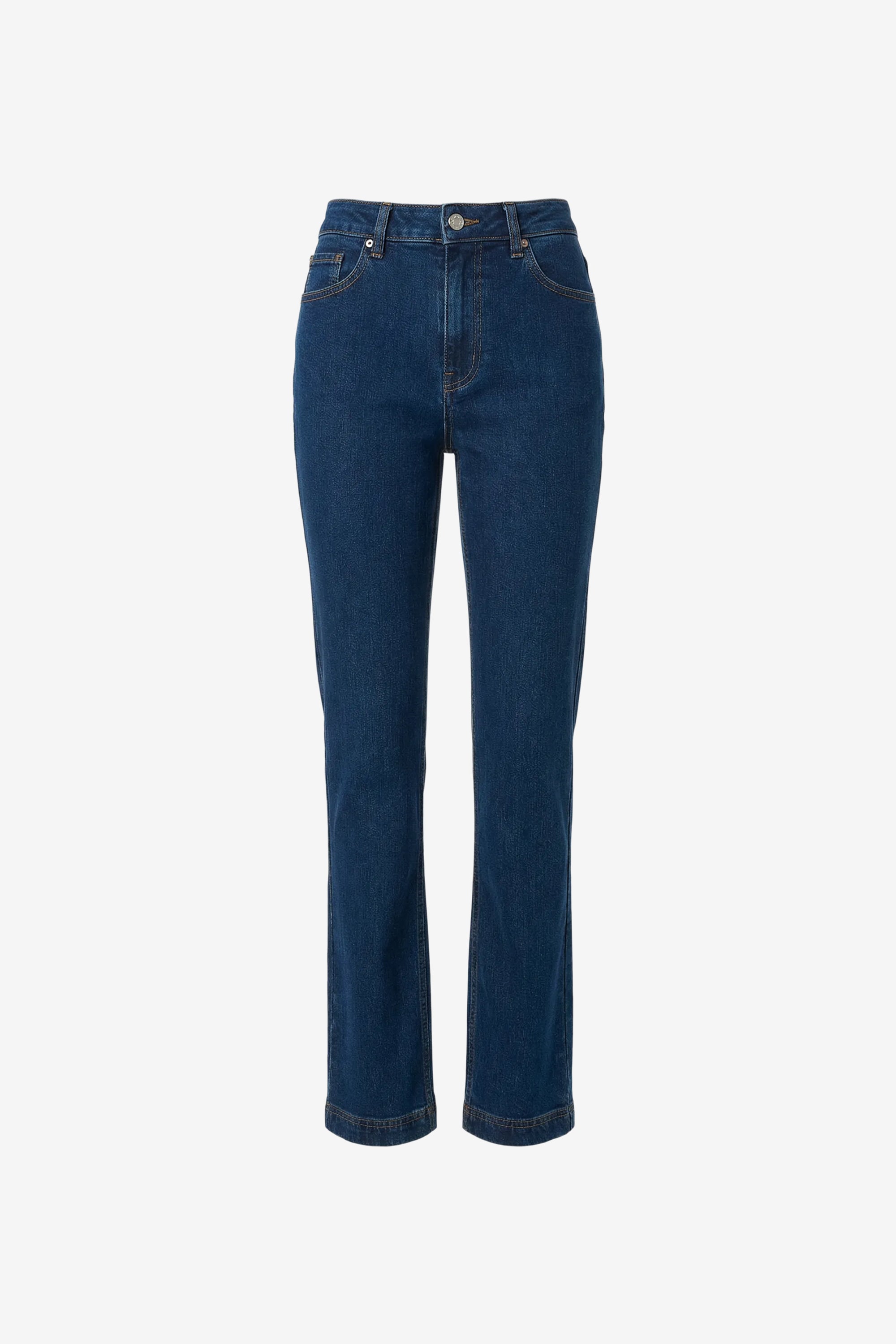 The Cynthia is a high-rise, fitted cigarette jean designed with a clean, cropped length for a sharp, modern silhouette. Crafted from structured denim, it offers a polished fit with everyday ease. Style it with a tailored blazer or relaxed knit for effortless versatility.