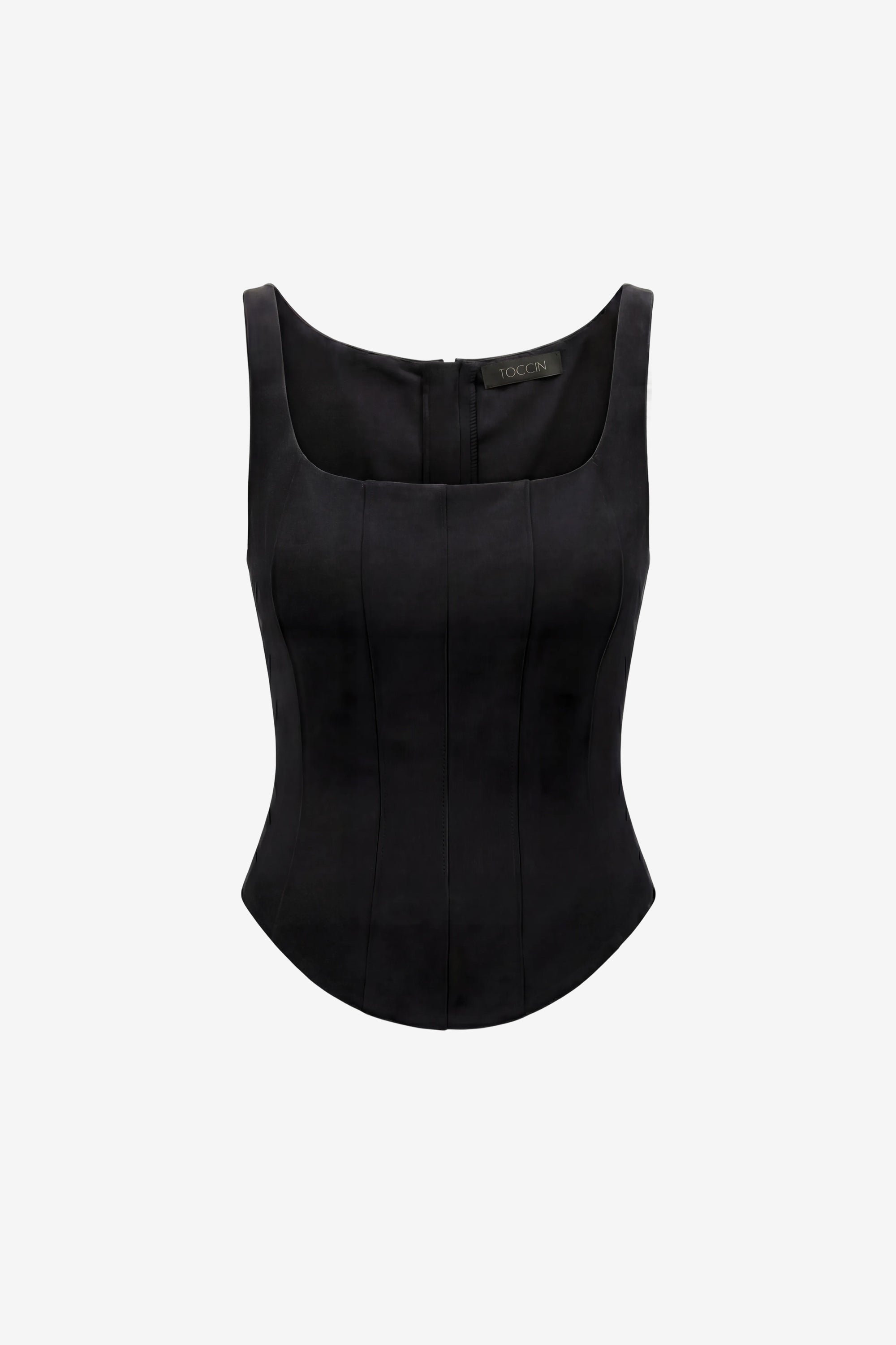The Ryder is a scoop-neck sculpted tank designed with a corset-inspired fit for a sleek, contoured silhouette. Crafted from structured ponte, it offers smooth support with a polished finish. Wear it with tailored trousers or denim for a refined, modern look.