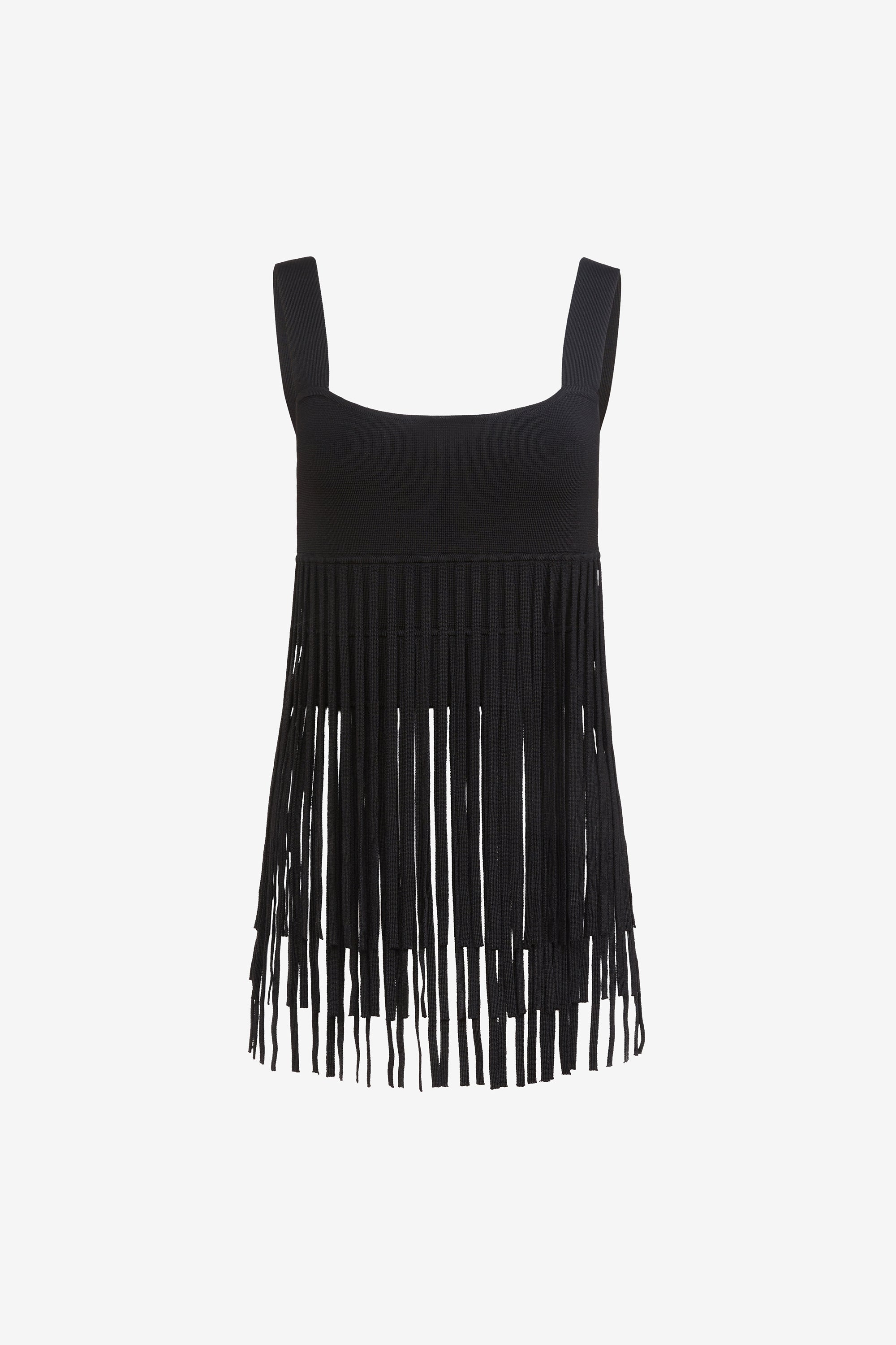 The Amaris Tank Top with Fringe is a statement tank top finished with three tiers of fringe for bold texture and effortless movement. Style it with tailored pants and heels for a night out, or dress it down with denim and sandals for a chic, elevated daytime look.