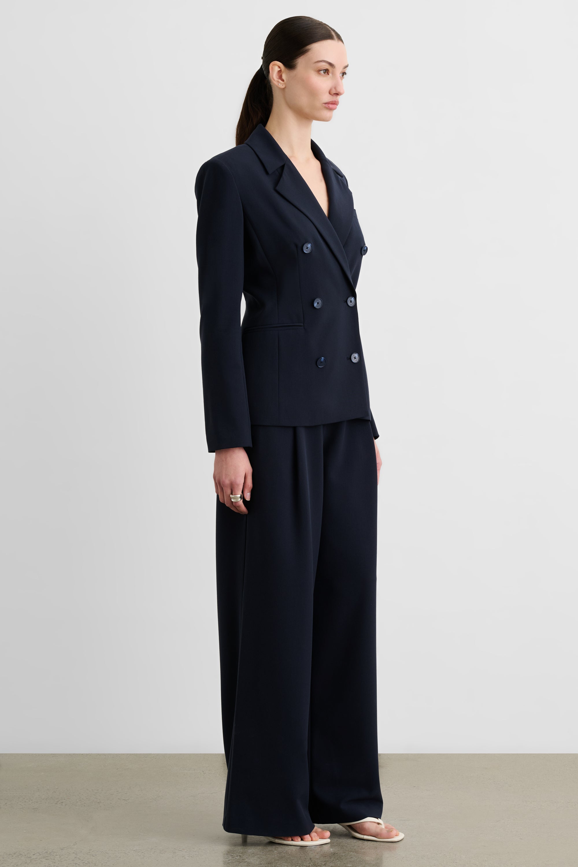 - Double breasted blazer with notched lapel
