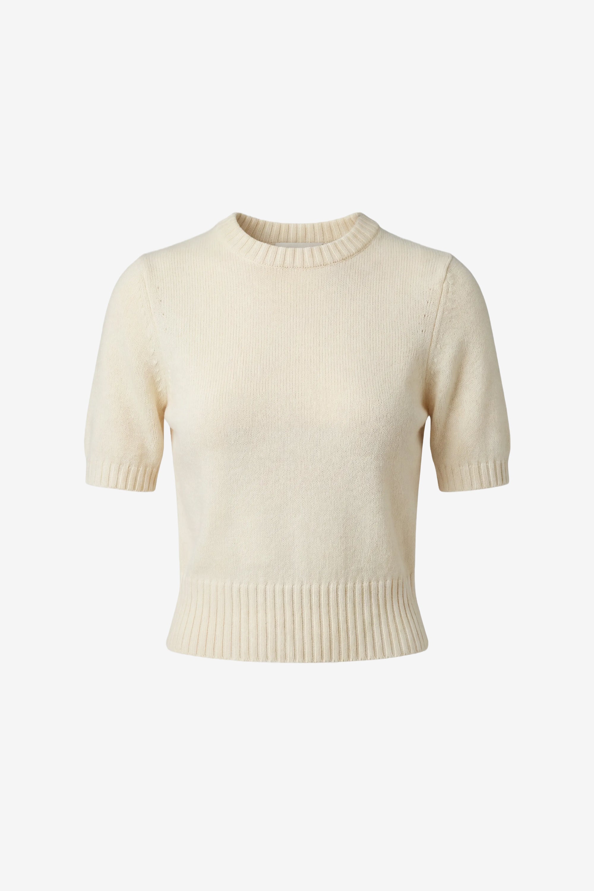 The Elsie is your go-to seasonless pullover sweater. Crafted from a luxurious cashmere-blend, this sweater features a cropped fit and short sleeves, making it both stylish and versatile. A true wardrobe essential for the cooler months. Styling tip: If you are between sizes, size up. For example, between XS and Small, order the Small for a more comfortable fit.