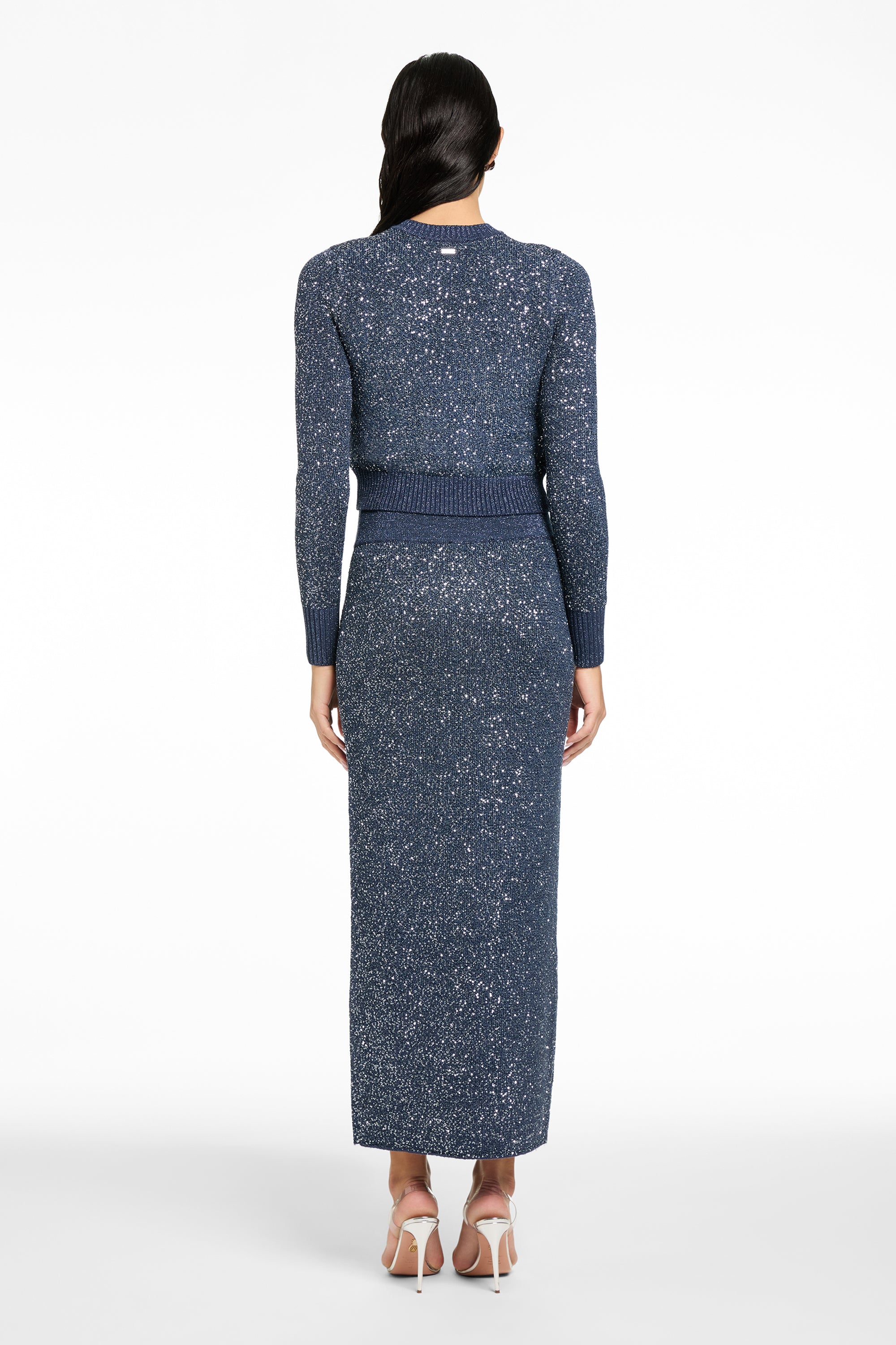 The Mollie is a crew-neck, fitted cropped cardigan embellished with subtle sequins for a touch of shimmer. Refined yet playful, it adds effortless glamour to any look. Wear it buttoned up as a top or layered over a slip dress for modern sophistication.